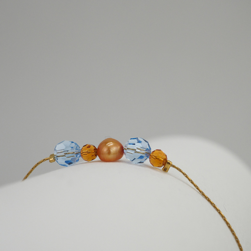Materiale: PVD-forgylt rustfritt stål med krystaller og farget ferskvannsperle