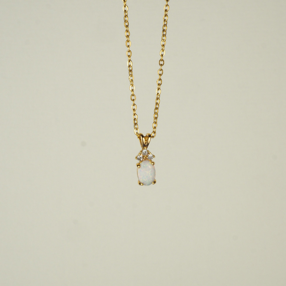 Materiale: PVD-gullforgylt rustfritt stål med kubisk zirkonia og opal