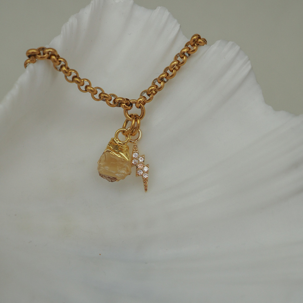 Materiale: PVD-gullforgylt rustfritt stål CZ og citrine
